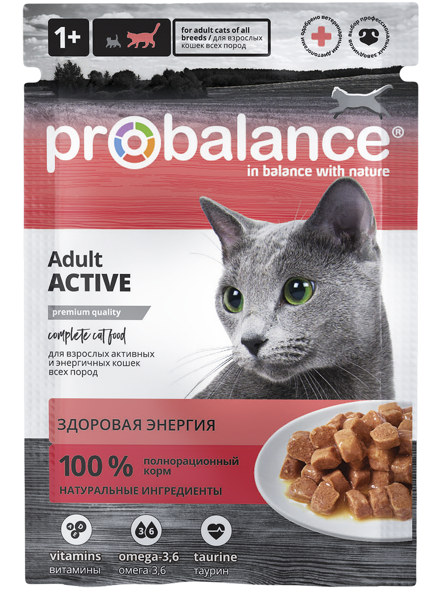 Влажный корм (паучи) для взрослых кошек всех пород, ведущих активный образ жизни